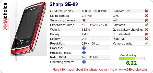 Do you have your website? Do you want to insert information about basic phone data of Sharp SE-02 somewhere? It is very easy. You can download the picture, or copy and paste the code below on the page:Pasting this code will display the following image: