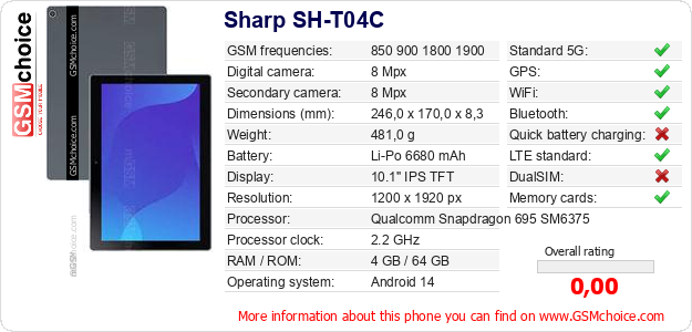 Do you have your website? Do you want to insert information about basic phone data of Sharp SH-T04C somewhere? It is very easy. You can download the picture, or copy and paste the code below on the page:Pasting this code will display the following image: