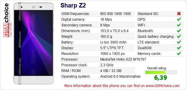 Do you have your website? Do you want to insert information about basic phone data of Sharp Z2 somewhere? It is very easy. You can download the picture, or copy and paste the code below on the page:Pasting this code will display the following image: