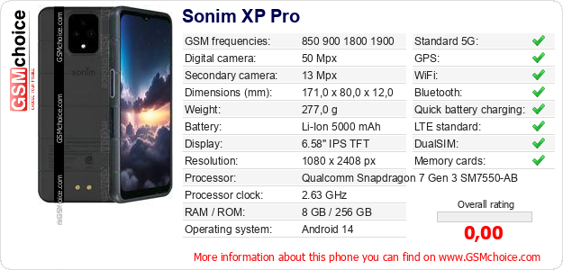 Do you have your website? Do you want to insert information about basic phone data of Sonim XP Pro somewhere? It is very easy. You can download the picture, or copy and paste the code below on the page:Pasting this code will display the following image: