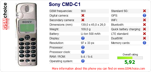 Do you have your website? Do you want to insert information about basic phone data of Sony CMD-C1 somewhere? It is very easy. You can download the picture, or copy and paste the code below on the page:Pasting this code will display the following image: