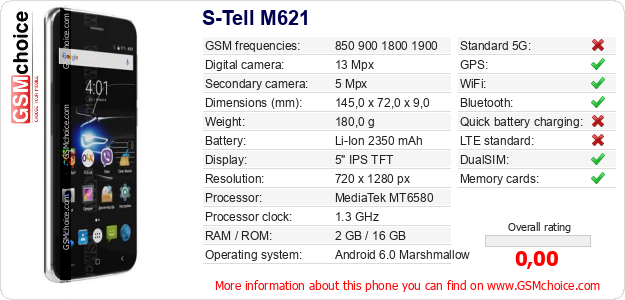Do you have your website? Do you want to insert information about basic phone data of S-Tell M621 somewhere? It is very easy. You can download the picture, or copy and paste the code below on the page:Pasting this code will display the following image: