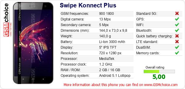 Do you have your website? Do you want to insert information about basic phone data of Swipe Konnect Plus somewhere? It is very easy. You can download the picture, or copy and paste the code below on the page:Pasting this code will display the following image: