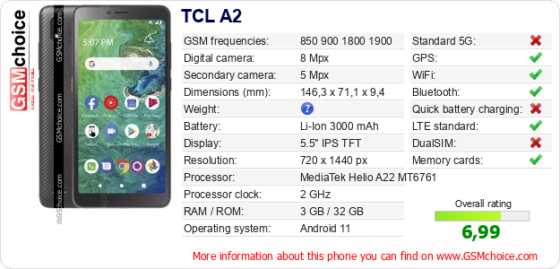 Do you have your website? Do you want to insert information about basic phone data of TCL A2 somewhere? It is very easy. You can download the picture, or copy and paste the code below on the page:Pasting this code will display the following image:
