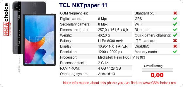 Do you have your website? Do you want to insert information about basic phone data of TCL NXTpaper 11 somewhere? It is very easy. You can download the picture, or copy and paste the code below on the page:Pasting this code will display the following image: