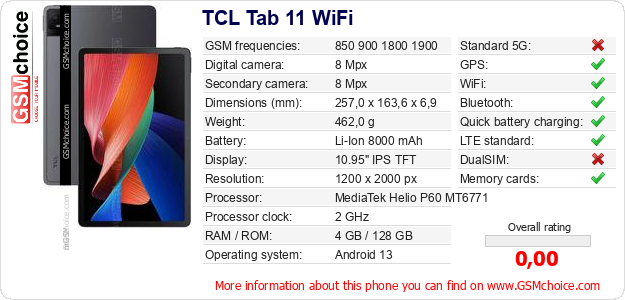Do you have your website? Do you want to insert information about basic phone data of TCL Tab 11 WiFi somewhere? It is very easy. You can download the picture, or copy and paste the code below on the page:Pasting this code will display the following image: