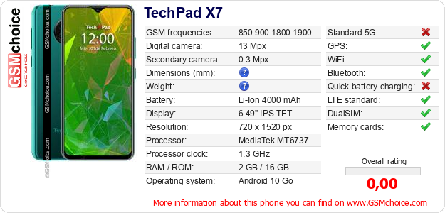 Do you have your website? Do you want to insert information about basic phone data of TechPad X7 somewhere? It is very easy. You can download the picture, or copy and paste the code below on the page:Pasting this code will display the following image: