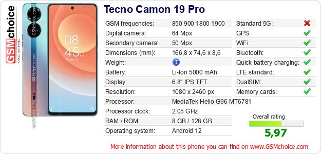 Do you have your website? Do you want to insert information about basic phone data of Tecno Camon 19 Pro somewhere? It is very easy. You can download the picture, or copy and paste the code below on the page:Pasting this code will display the following image: