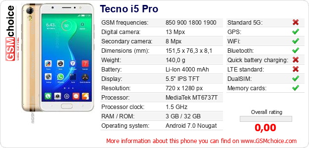 Do you have your website? Do you want to insert information about basic phone data of Tecno i5 Pro somewhere? It is very easy. You can download the picture, or copy and paste the code below on the page:Pasting this code will display the following image: