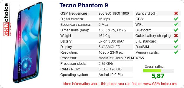 Do you have your website? Do you want to insert information about basic phone data of Tecno Phantom 9 somewhere? It is very easy. You can download the picture, or copy and paste the code below on the page:Pasting this code will display the following image: