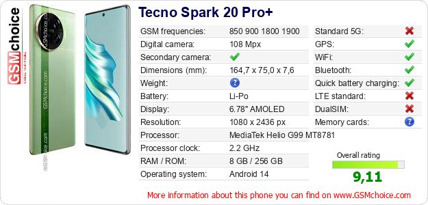 Do you have your website? Do you want to insert information about basic phone data of Tecno Spark 20 Pro+ somewhere? It is very easy. You can download the picture, or copy and paste the code below on the page:Pasting this code will display the following image: