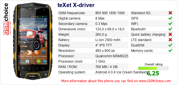 Do you have your website? Do you want to insert information about basic phone data of teXet X-driver somewhere? It is very easy. You can download the picture, or copy and paste the code below on the page:Pasting this code will display the following image: