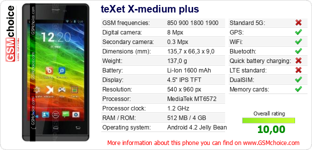 Do you have your website? Do you want to insert information about basic phone data of teXet X-medium plus somewhere? It is very easy. You can download the picture, or copy and paste the code below on the page:Pasting this code will display the following image: