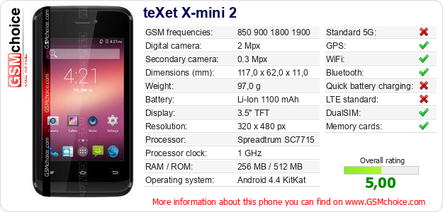 Do you have your website? Do you want to insert information about basic phone data of teXet X-mini 2 somewhere? It is very easy. You can download the picture, or copy and paste the code below on the page:Pasting this code will display the following image: