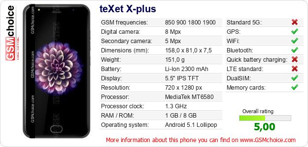 Do you have your website? Do you want to insert information about basic phone data of teXet X-plus somewhere? It is very easy. You can download the picture, or copy and paste the code below on the page:Pasting this code will display the following image: