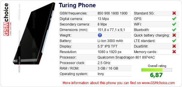 Do you have your website? Do you want to insert information about basic phone data of Turing Phone somewhere? It is very easy. You can download the picture, or copy and paste the code below on the page:Pasting this code will display the following image: