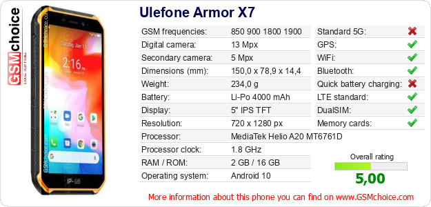 Do you have your website? Do you want to insert information about basic phone data of Ulefone Armor X7 somewhere? It is very easy. You can download the picture, or copy and paste the code below on the page:Pasting this code will display the following image: