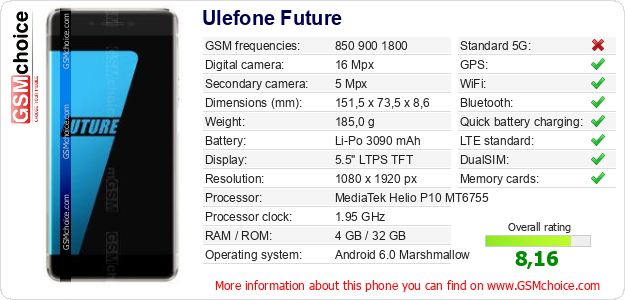 Do you have your website? Do you want to insert information about basic phone data of Ulefone Future somewhere? It is very easy. You can download the picture, or copy and paste the code below on the page:Pasting this code will display the following image:
