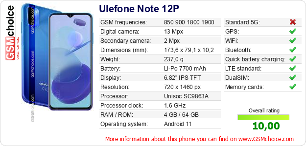 Do you have your website? Do you want to insert information about basic phone data of Ulefone Note 12P somewhere? It is very easy. You can download the picture, or copy and paste the code below on the page:Pasting this code will display the following image:
