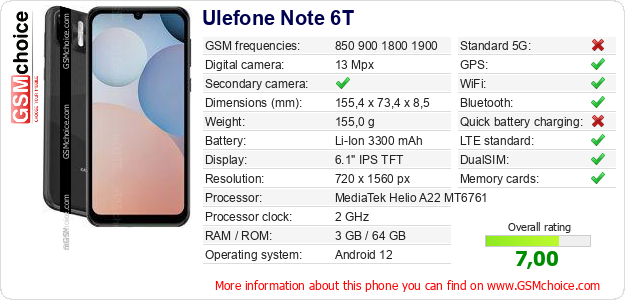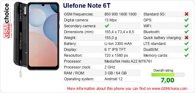 Do you have your website? Do you want to insert information about basic phone data of Ulefone Note 6T somewhere? It is very easy. You can download the picture, or copy and paste the code below on the page:Pasting this code will display the following image: