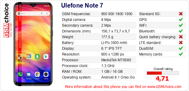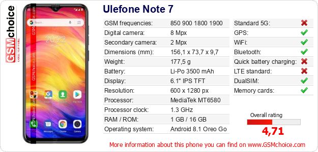 Do you have your website? Do you want to insert information about basic phone data of Ulefone Note 7 somewhere? It is very easy. You can download the picture, or copy and paste the code below on the page:Pasting this code will display the following image: