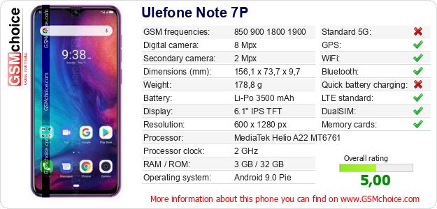 Do you have your website? Do you want to insert information about basic phone data of Ulefone Note 7P somewhere? It is very easy. You can download the picture, or copy and paste the code below on the page:Pasting this code will display the following image: