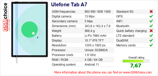 Do you have your website? Do you want to insert information about basic phone data of Ulefone Tab A7 somewhere? It is very easy. You can download the picture, or copy and paste the code below on the page:Pasting this code will display the following image: