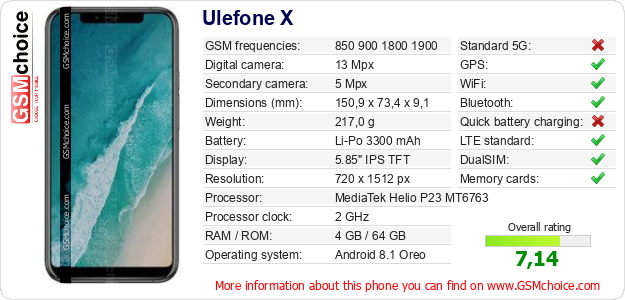 Do you have your website? Do you want to insert information about basic phone data of Ulefone X somewhere? It is very easy. You can download the picture, or copy and paste the code below on the page:Pasting this code will display the following image: