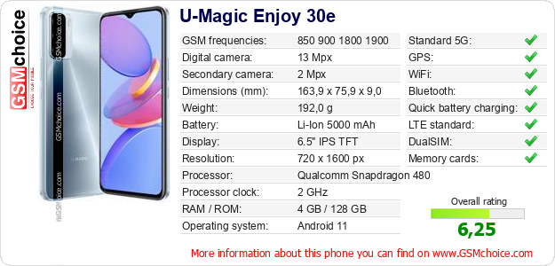 Do you have your website? Do you want to insert information about basic phone data of U-Magic Enjoy 30e somewhere? It is very easy. You can download the picture, or copy and paste the code below on the page:Pasting this code will display the following image: