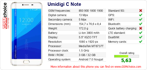 Do you have your website? Do you want to insert information about basic phone data of Umidigi C Note somewhere? It is very easy. You can download the picture, or copy and paste the code below on the page:Pasting this code will display the following image: