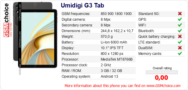 Do you have your website? Do you want to insert information about basic phone data of Umidigi G3 Tab somewhere? It is very easy. You can download the picture, or copy and paste the code below on the page:Pasting this code will display the following image: