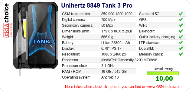 Do you have your website? Do you want to insert information about basic phone data of Unihertz 8849 Tank 3 Pro somewhere? It is very easy. You can download the picture, or copy and paste the code below on the page:Pasting this code will display the following image: