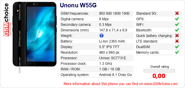 Do you have your website? Do you want to insert information about basic phone data of Unonu W55G somewhere? It is very easy. You can download the picture, or copy and paste the code below on the page:Pasting this code will display the following image: