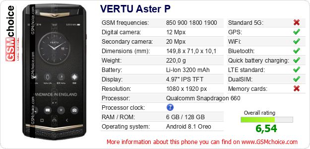 Do you have your website? Do you want to insert information about basic phone data of VERTU Aster P somewhere? It is very easy. You can download the picture, or copy and paste the code below on the page:Pasting this code will display the following image: