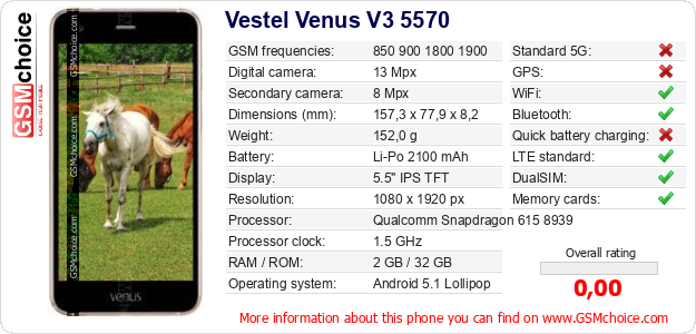 Do you have your website? Do you want to insert information about basic phone data of Vestel Venus V3 5570 somewhere? It is very easy. You can download the picture, or copy and paste the code below on the page:Pasting this code will display the following image: