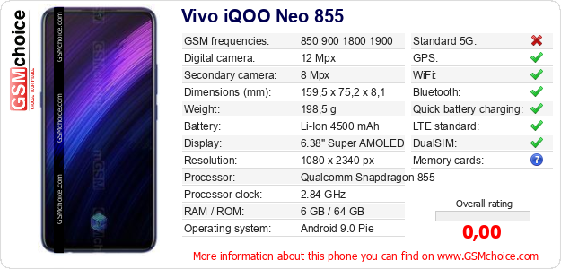 Do you have your website? Do you want to insert information about basic phone data of Vivo iQOO Neo 855 somewhere? It is very easy. You can download the picture, or copy and paste the code below on the page:Pasting this code will display the following image: