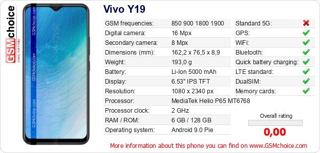 Do you have your website? Do you want to insert information about basic phone data of Vivo Y19 somewhere? It is very easy. You can download the picture, or copy and paste the code below on the page:Pasting this code will display the following image:
