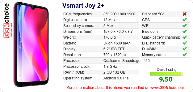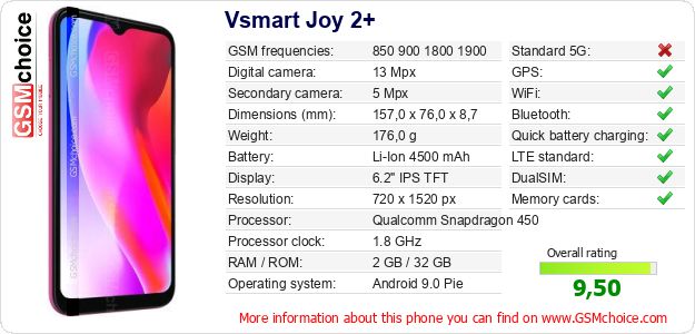 Do you have your website? Do you want to insert information about basic phone data of Vsmart Joy 2+ somewhere? It is very easy. You can download the picture, or copy and paste the code below on the page:Pasting this code will display the following image: