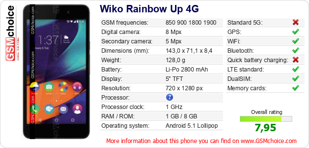 Do you have your website? Do you want to insert information about basic phone data of Wiko Rainbow Up 4G somewhere? It is very easy. You can download the picture, or copy and paste the code below on the page:Pasting this code will display the following image: