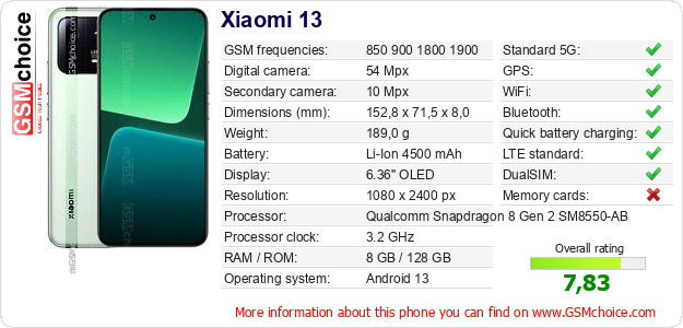 Do you have your website? Do you want to insert information about basic phone data of Xiaomi 13 somewhere? It is very easy. You can download the picture, or copy and paste the code below on the page:Pasting this code will display the following image: