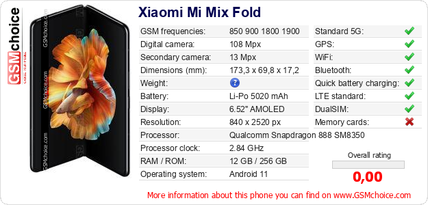 Do you have your website? Do you want to insert information about basic phone data of Xiaomi Mi Mix Fold somewhere? It is very easy. You can download the picture, or copy and paste the code below on the page:Pasting this code will display the following image: