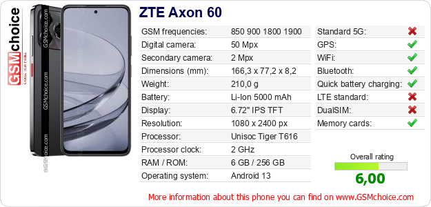 Do you have your website? Do you want to insert information about basic phone data of ZTE Axon 60 somewhere? It is very easy. You can download the picture, or copy and paste the code below on the page:Pasting this code will display the following image: