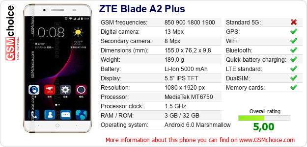 Do you have your website? Do you want to insert information about basic phone data of ZTE Blade A2 Plus somewhere? It is very easy. You can download the picture, or copy and paste the code below on the page:Pasting this code will display the following image:
