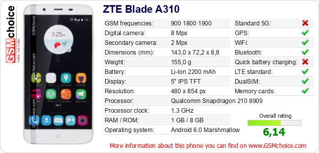 Do you have your website? Do you want to insert information about basic phone data of ZTE Blade A310 somewhere? It is very easy. You can download the picture, or copy and paste the code below on the page:Pasting this code will display the following image: