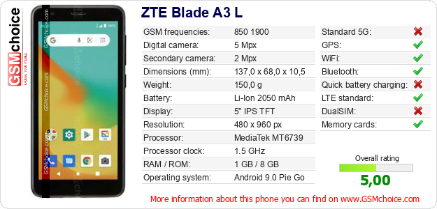 Do you have your website? Do you want to insert information about basic phone data of ZTE Blade A3 L somewhere? It is very easy. You can download the picture, or copy and paste the code below on the page:Pasting this code will display the following image: