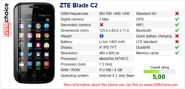 Do you have your website? Do you want to insert information about basic phone data of ZTE Blade C2 somewhere? It is very easy. You can download the picture, or copy and paste the code below on the page:Pasting this code will display the following image: