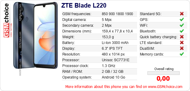 Do you have your website? Do you want to insert information about basic phone data of ZTE Blade L220 somewhere? It is very easy. You can download the picture, or copy and paste the code below on the page:Pasting this code will display the following image: