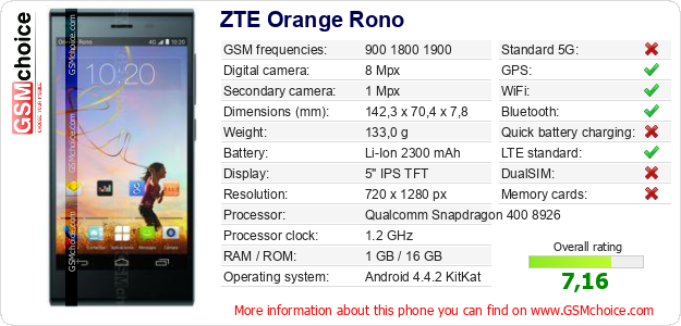 Do you have your website? Do you want to insert information about basic phone data of ZTE Orange Rono somewhere? It is very easy. You can download the picture, or copy and paste the code below on the page:Pasting this code will display the following image: