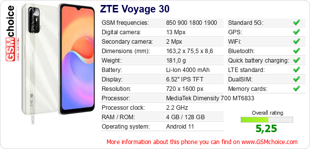 Do you have your website? Do you want to insert information about basic phone data of ZTE Voyage 30 somewhere? It is very easy. You can download the picture, or copy and paste the code below on the page:Pasting this code will display the following image: