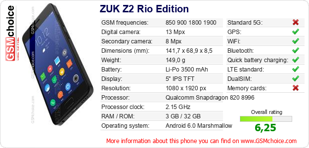 Do you have your website? Do you want to insert information about basic phone data of ZUK Z2 Rio Edition somewhere? It is very easy. You can download the picture, or copy and paste the code below on the page:Pasting this code will display the following image:
